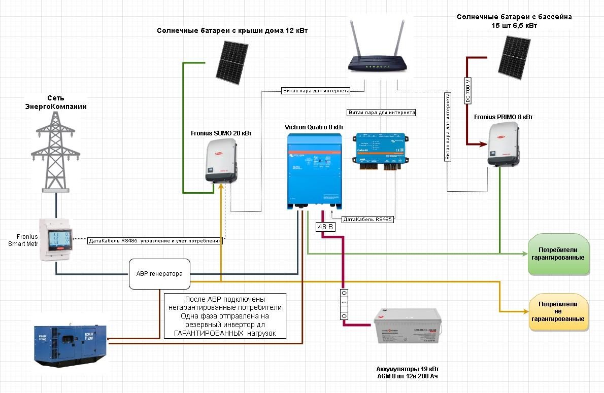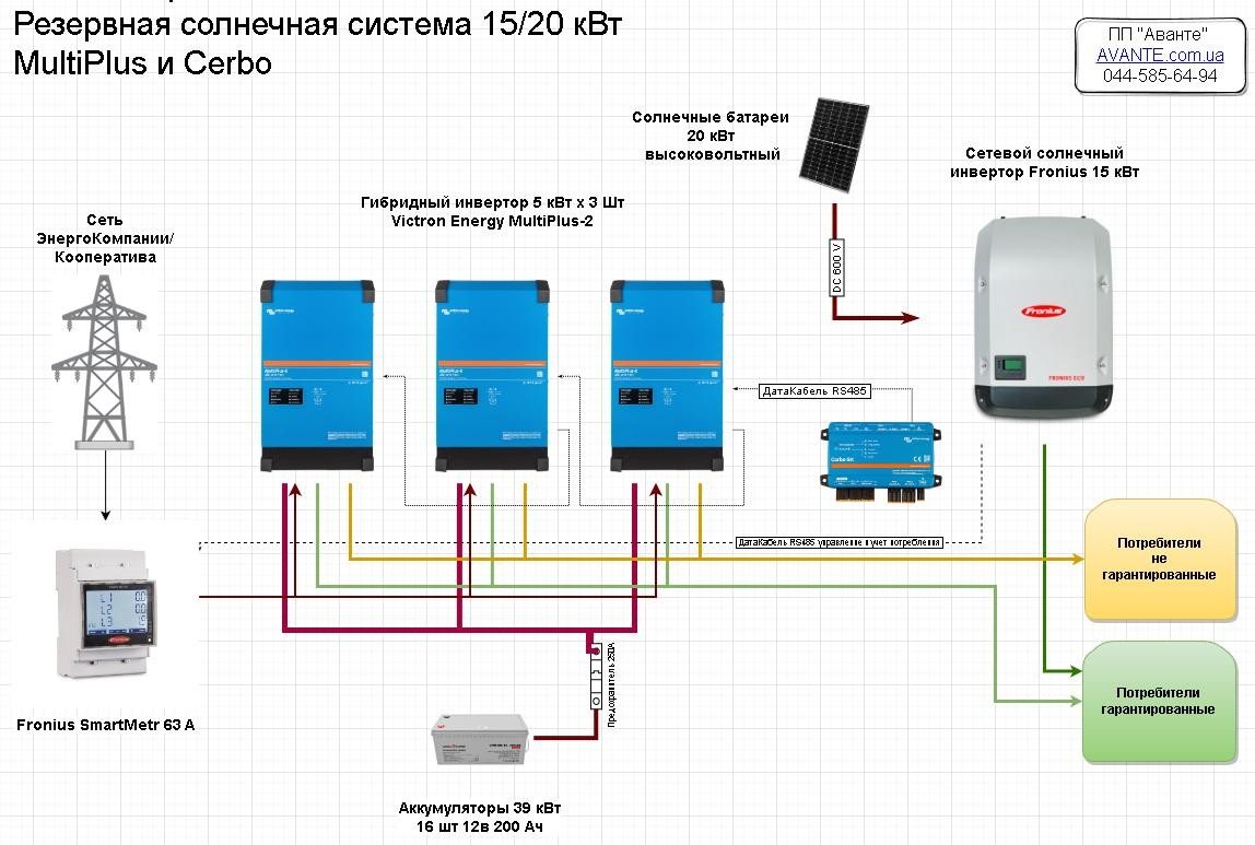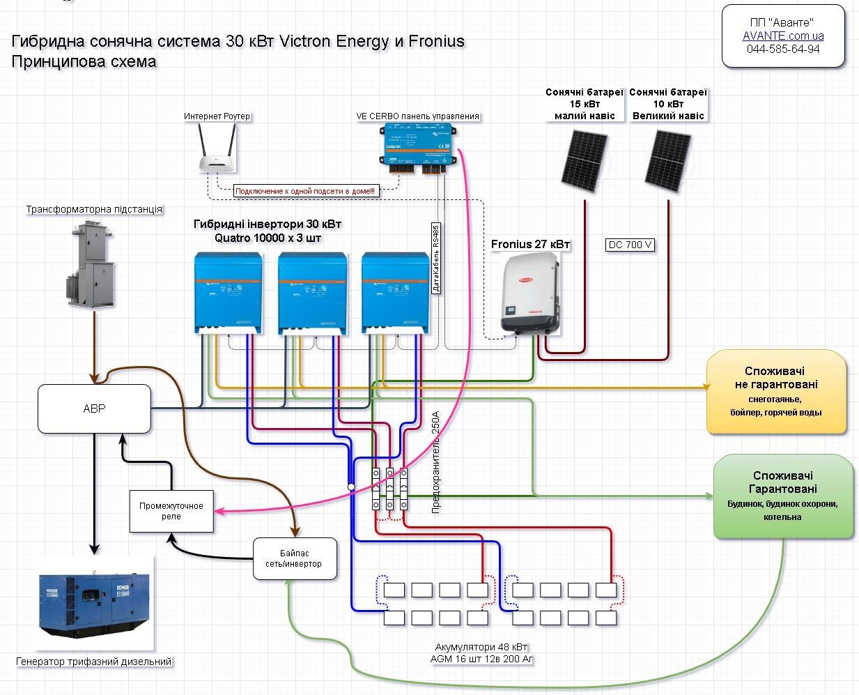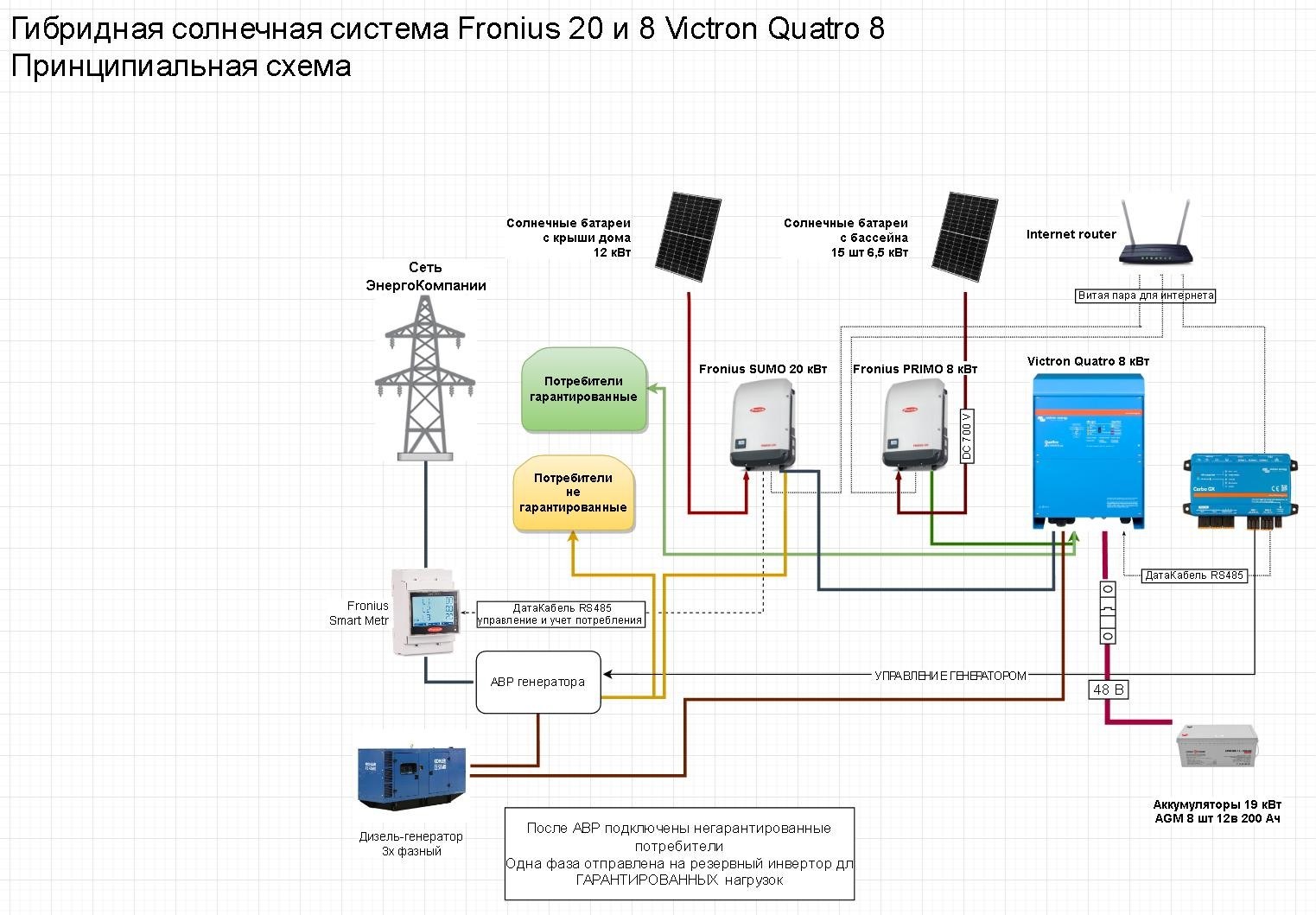 Кому потрібні схеми на інверторах Victron Energy та Fronius, користуйтесь.