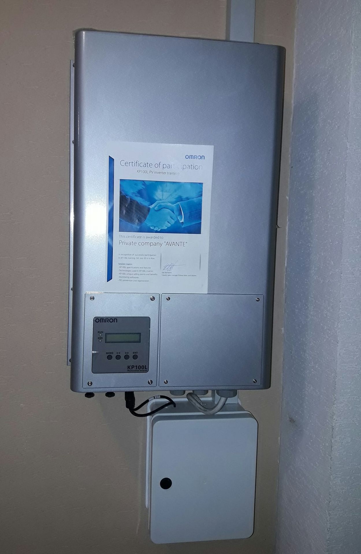 - Монтаж інвертора: Інвертор OMRON був підключений до мережі електропостачання та налаштований для оптимального виробництва та продажу електроенергії.