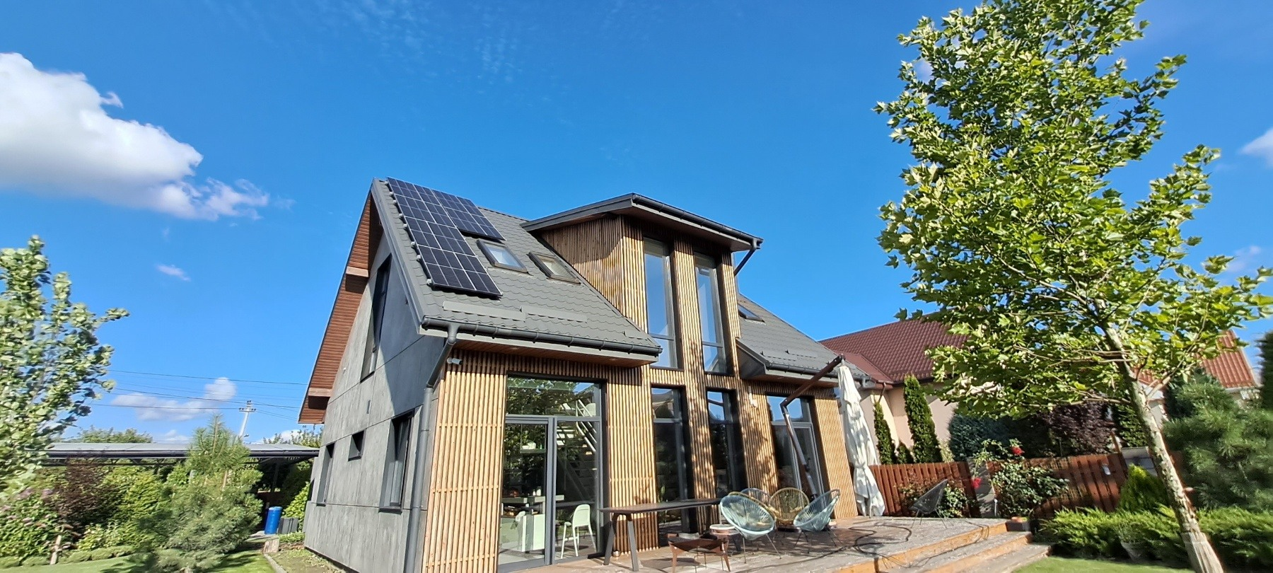 • Енергонезалежність: Завдяки сонячній енергії будинок тепер майже повністю забезпечує себе електроенергією. Це особливо актуально в умовах постійного зростання цін на енергоресурси.