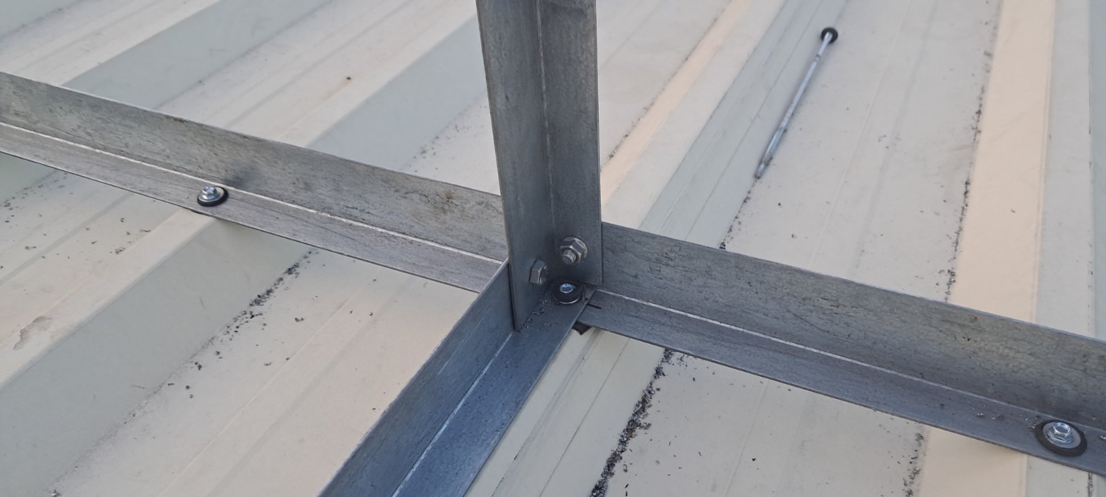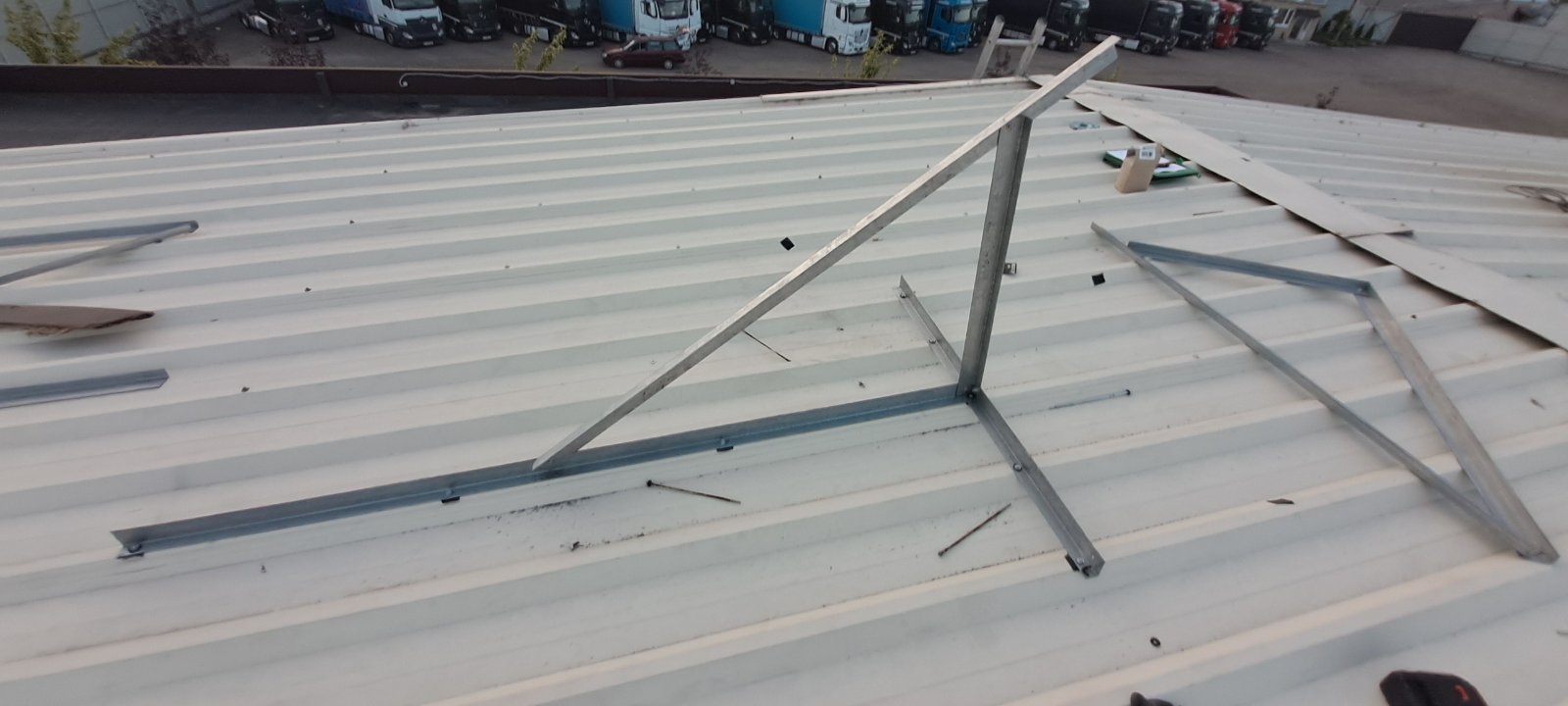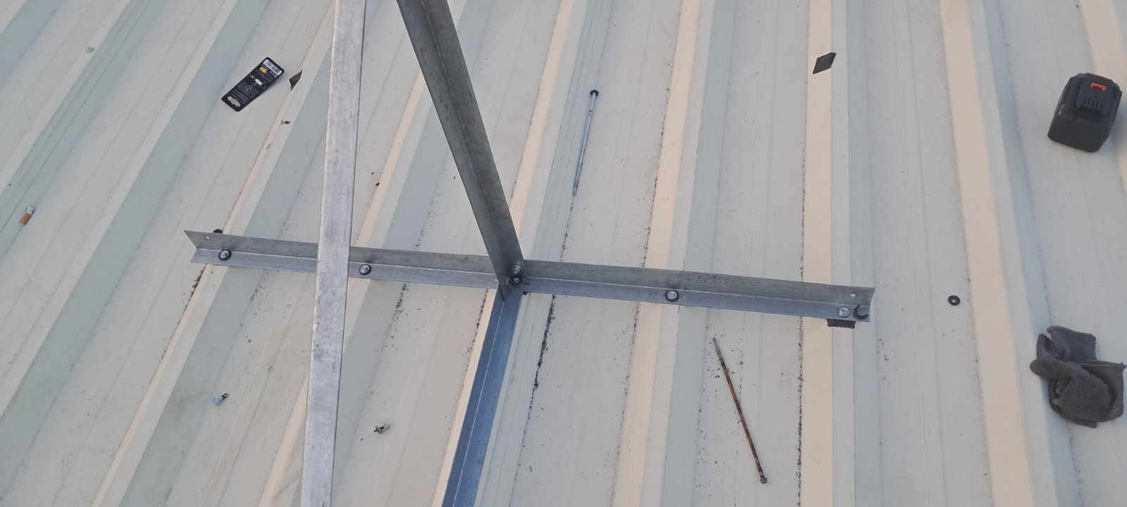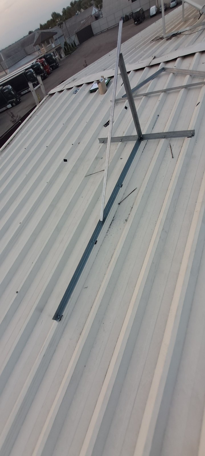 Для кріплення панелей було обрано опору у вигляді трикутників, виготовлених з уголків розміром 50х30х3. Таке рішення забезпечило необхідну стійкість та надійність конструкції. Для кріплення до даху використовували спеціальні шурупи для сендвіч-панелей, що забезпечило надійне та безпечне з'єднання.
