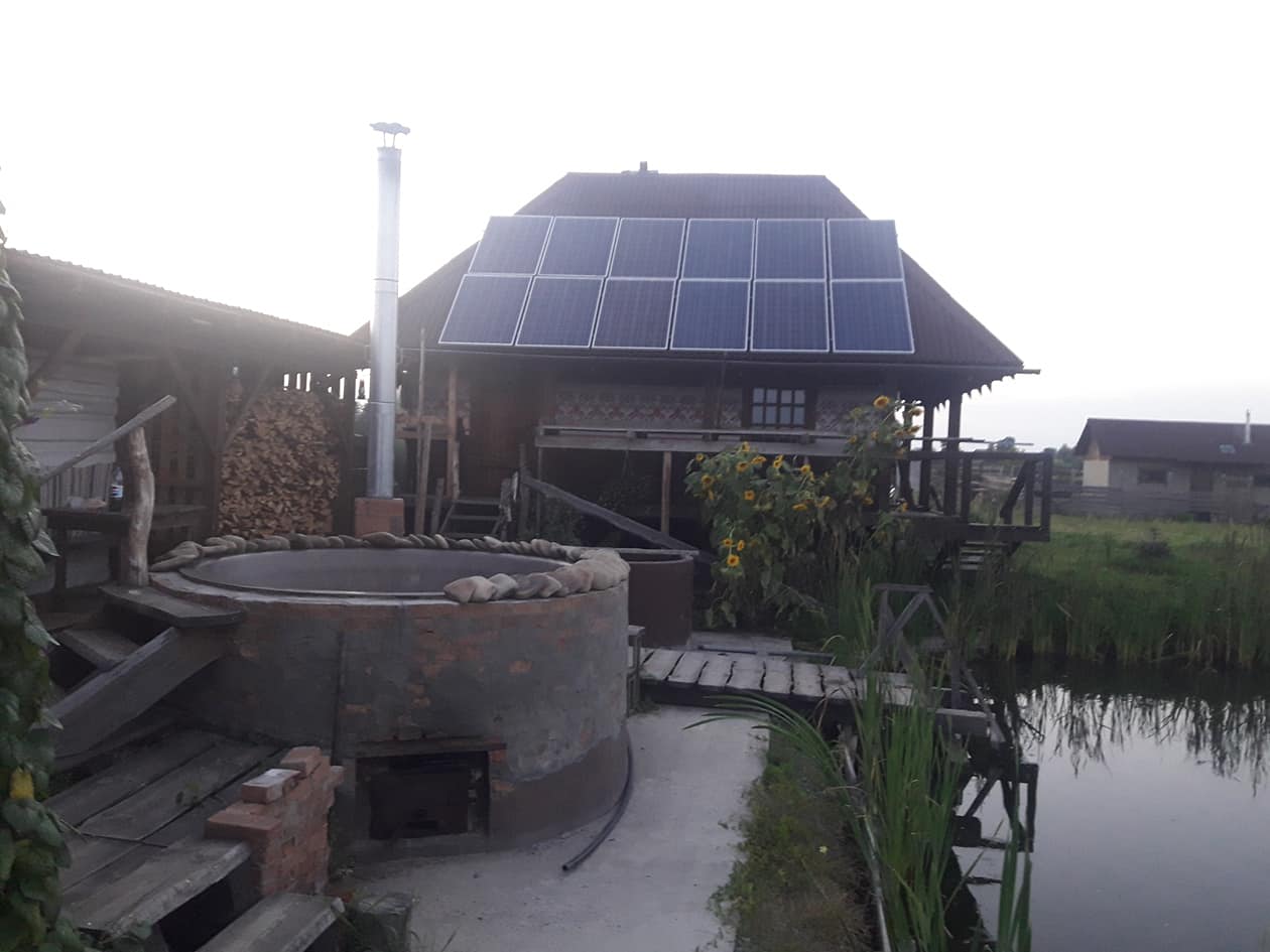 У 2013 році до нас звернувся власник садиби, який прагнув зробити свою баню та купель повністю автономними від мережі електропостачання. Використання генератора було незручним та не екологічним, тому сонячна енергія стала ідеальним рішенням.