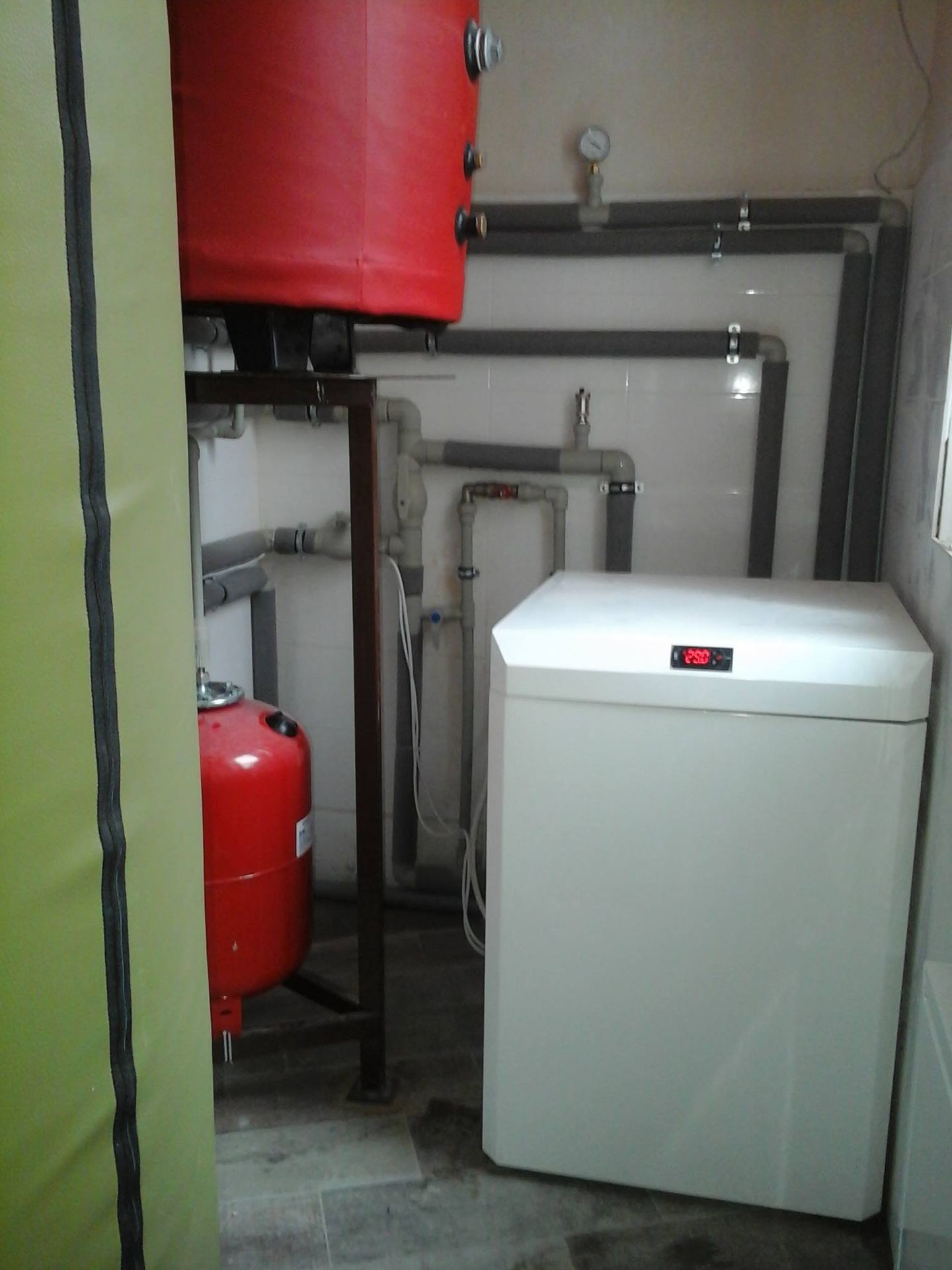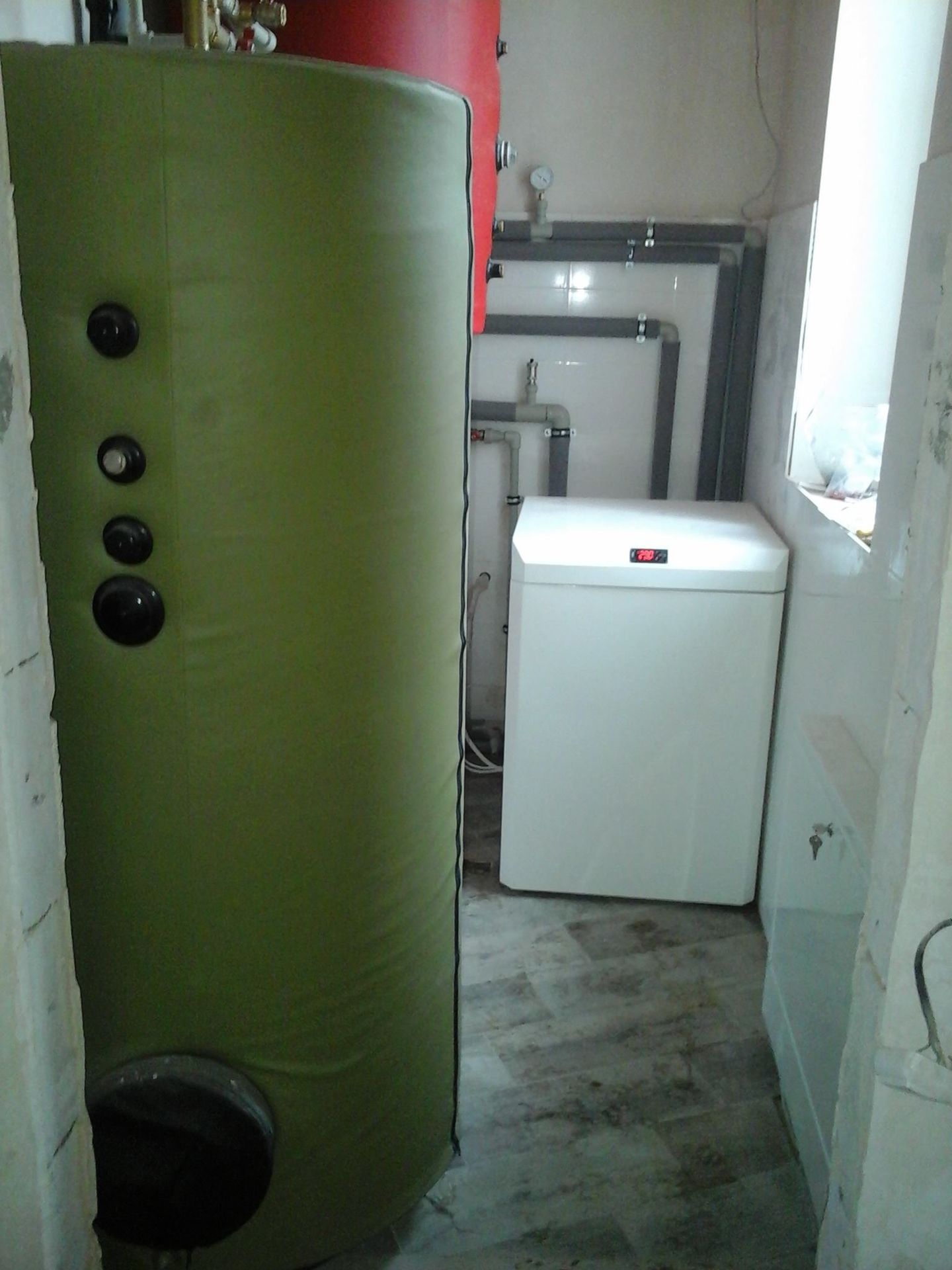 Топкова в цьому будинку була дуже маленькою. Щоб розмістити все обладнання та забезпечити до нього доступ для обслуговування, буферну ємність довелося підняти на підставку. Це рішення демонструє гнучкість та компактність теплових насосів "Фенікс 8", які можна встановлювати навіть в обмежених просторах.