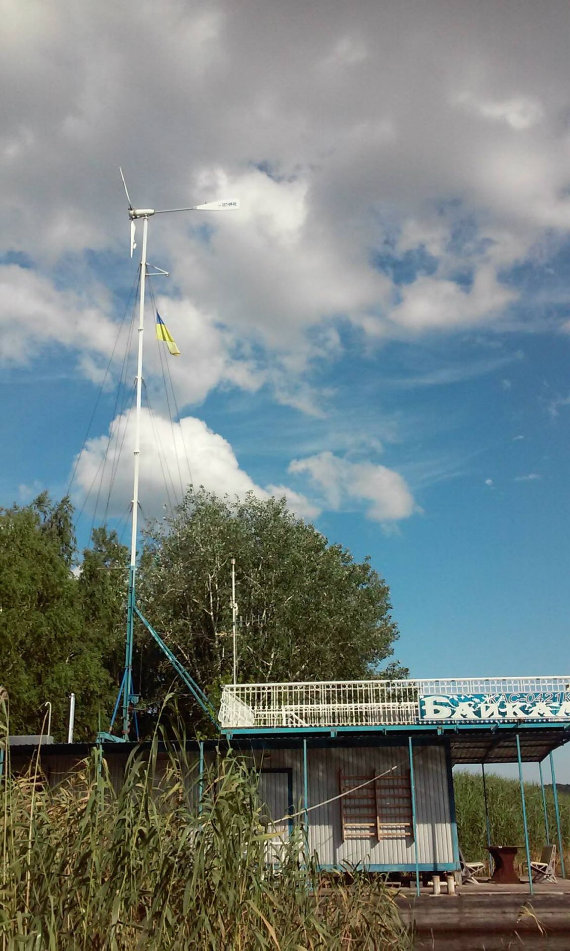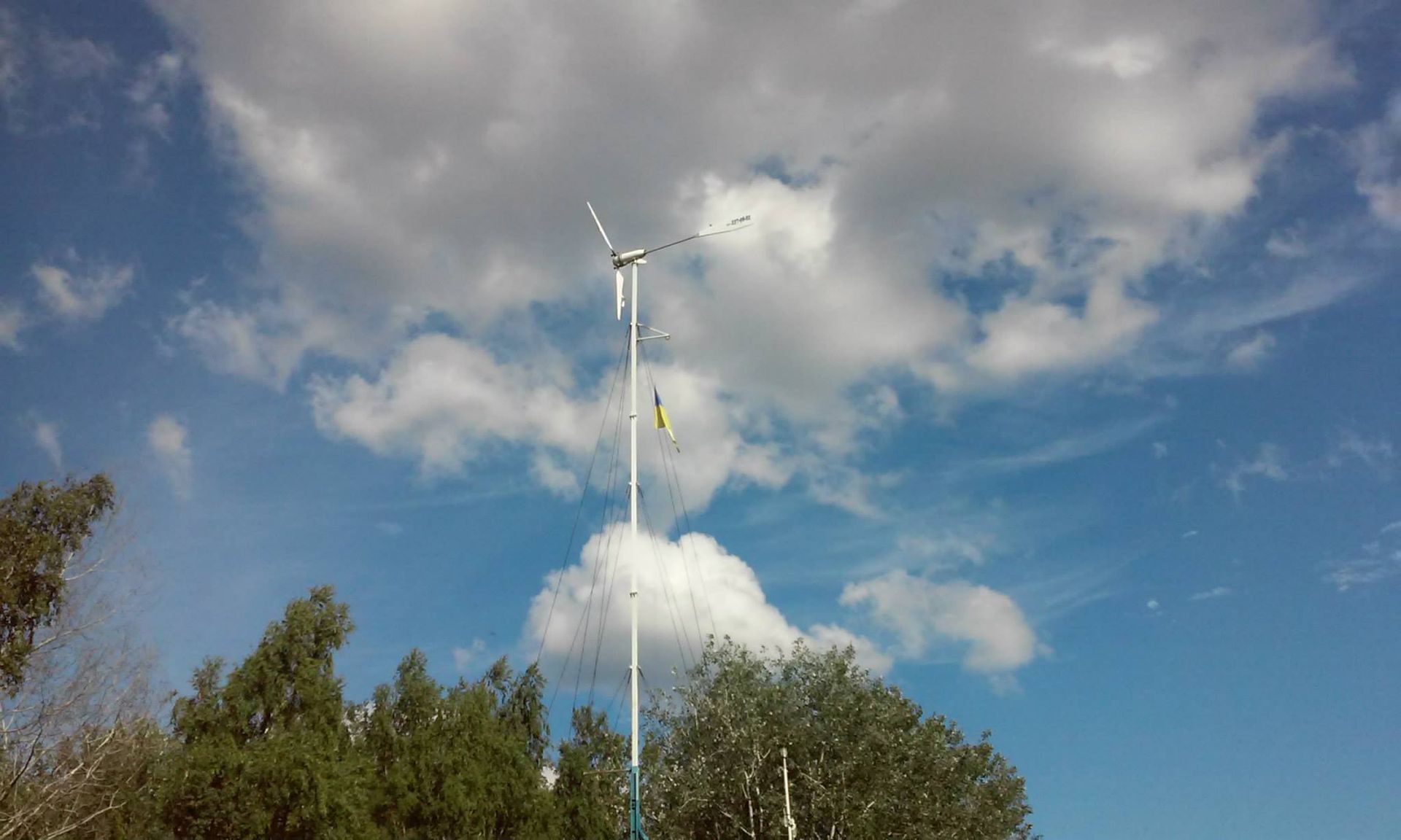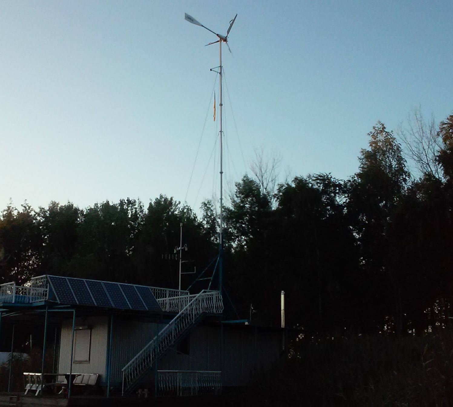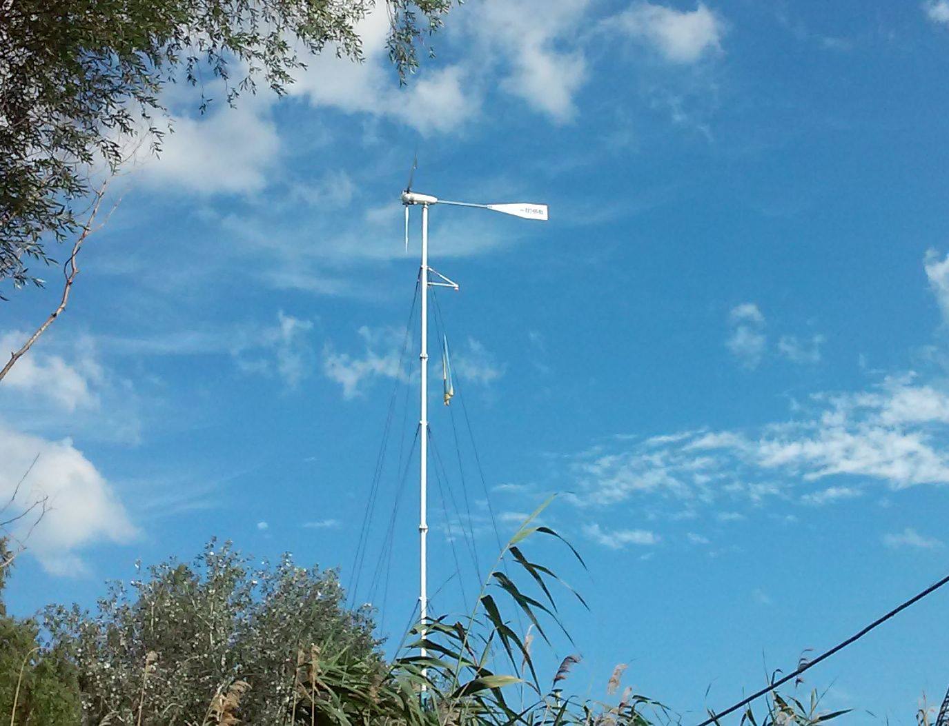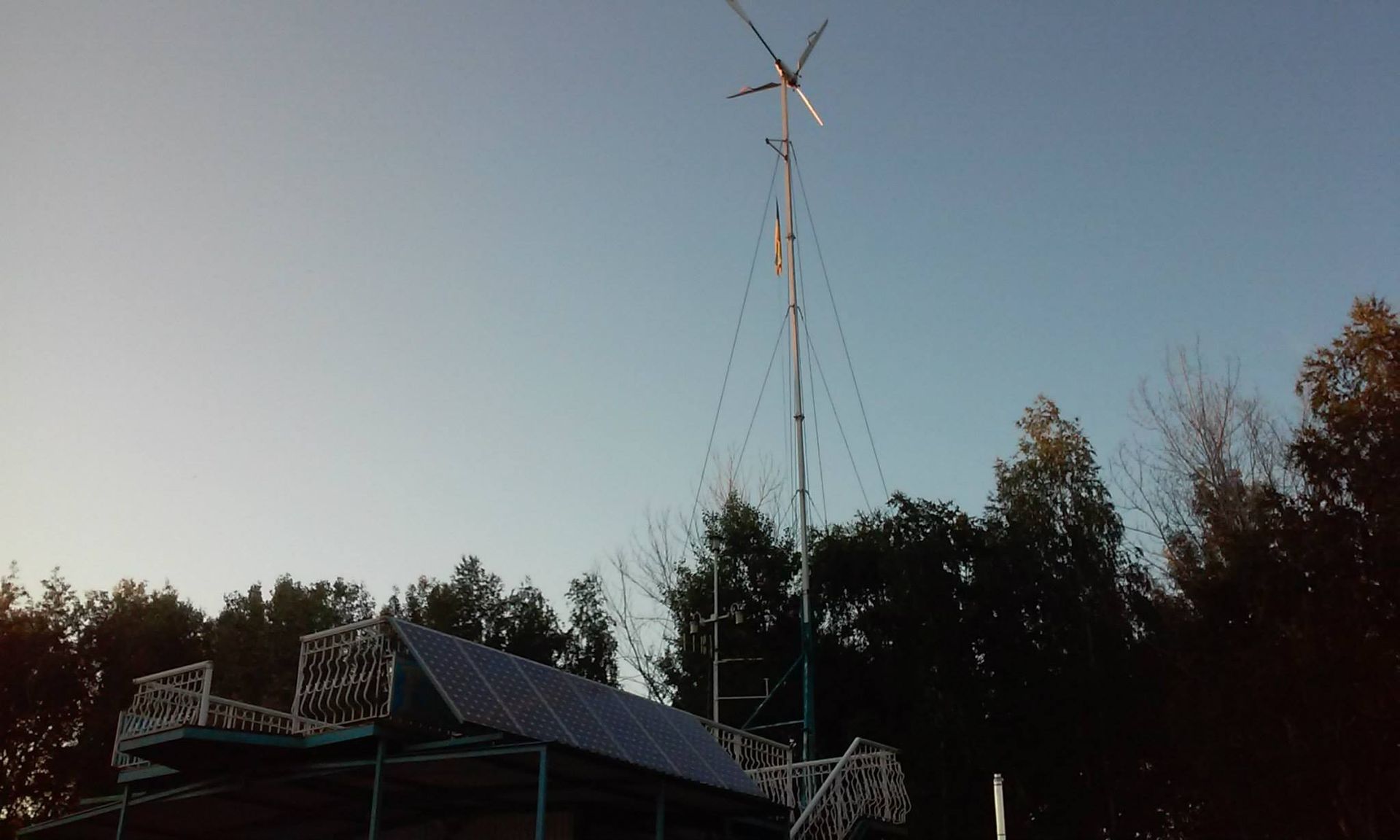 - Вітряк 800 Вт: Цей вітряк, встановлений на спеціальній щоглі, використовує силу вітру для генерування додаткової електроенергії.