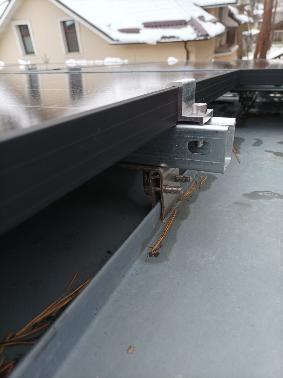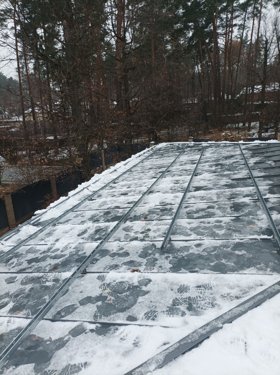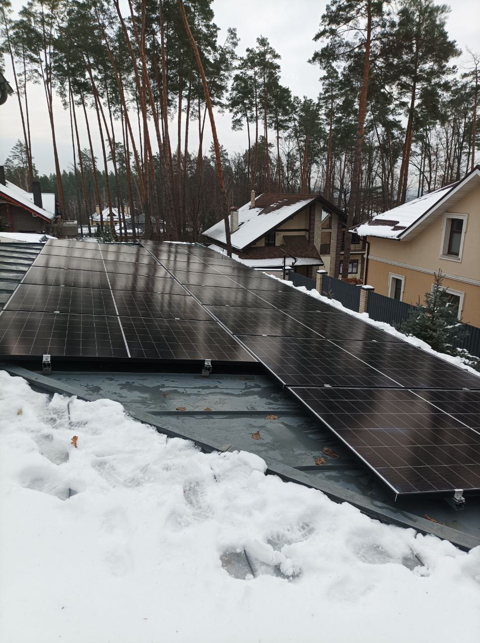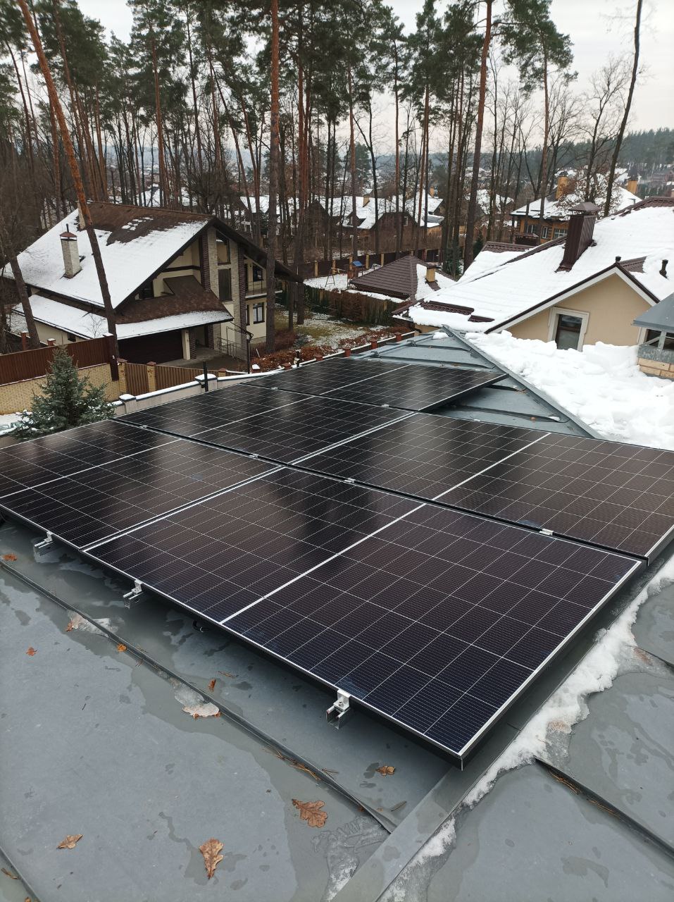 Сніг на даху не став на заваді. Наші монтажники розчистили поверхню, встановили кріплення та змонтували панелі. Ми розуміємо, наскільки важливо для наших клієнтів мати надійне джерело енергії, тому працюємо в будь-яких умовах!