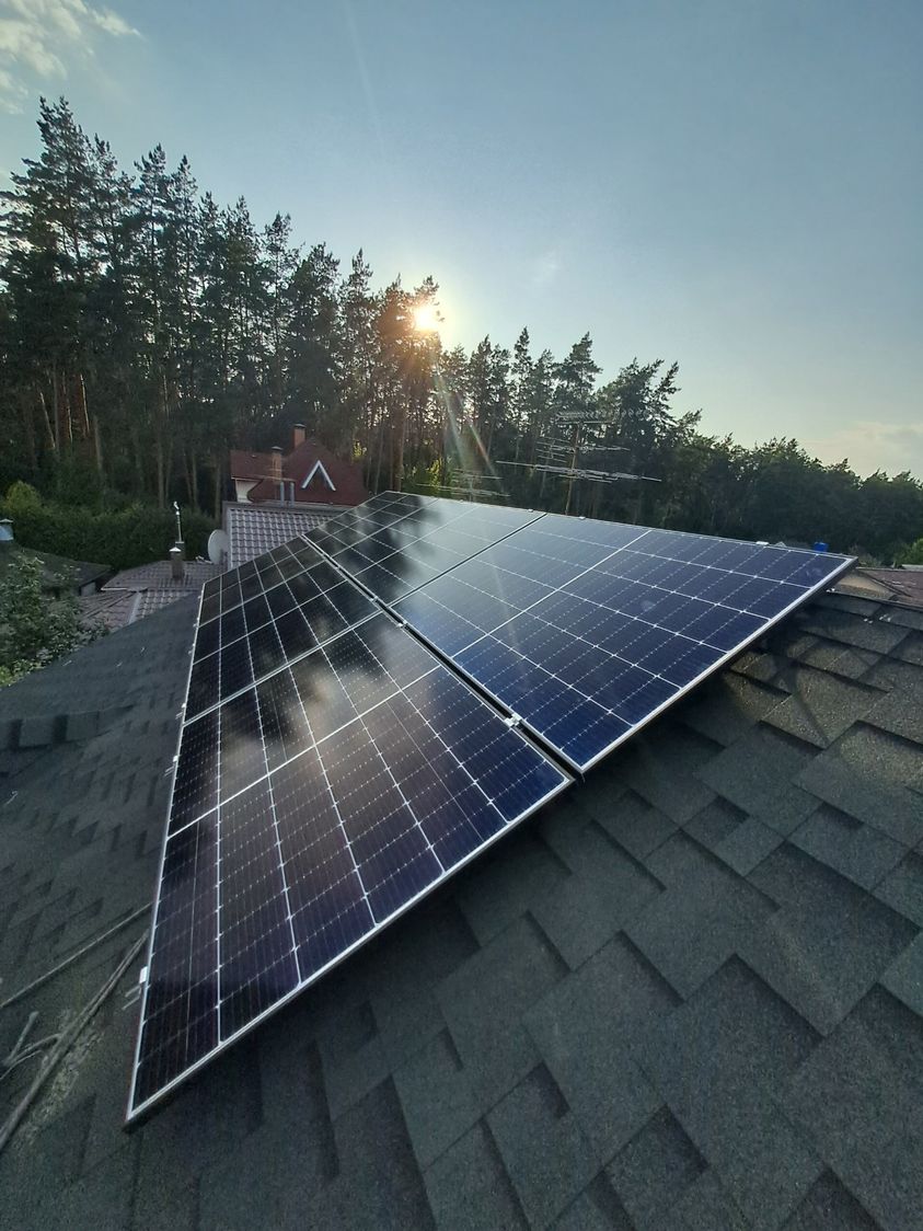Система резервного живлення deye 8 кВт з сонячними батареями 10 кВт для компенсації споживання, Київська область, село Гореничі 2023-06 дах навіс