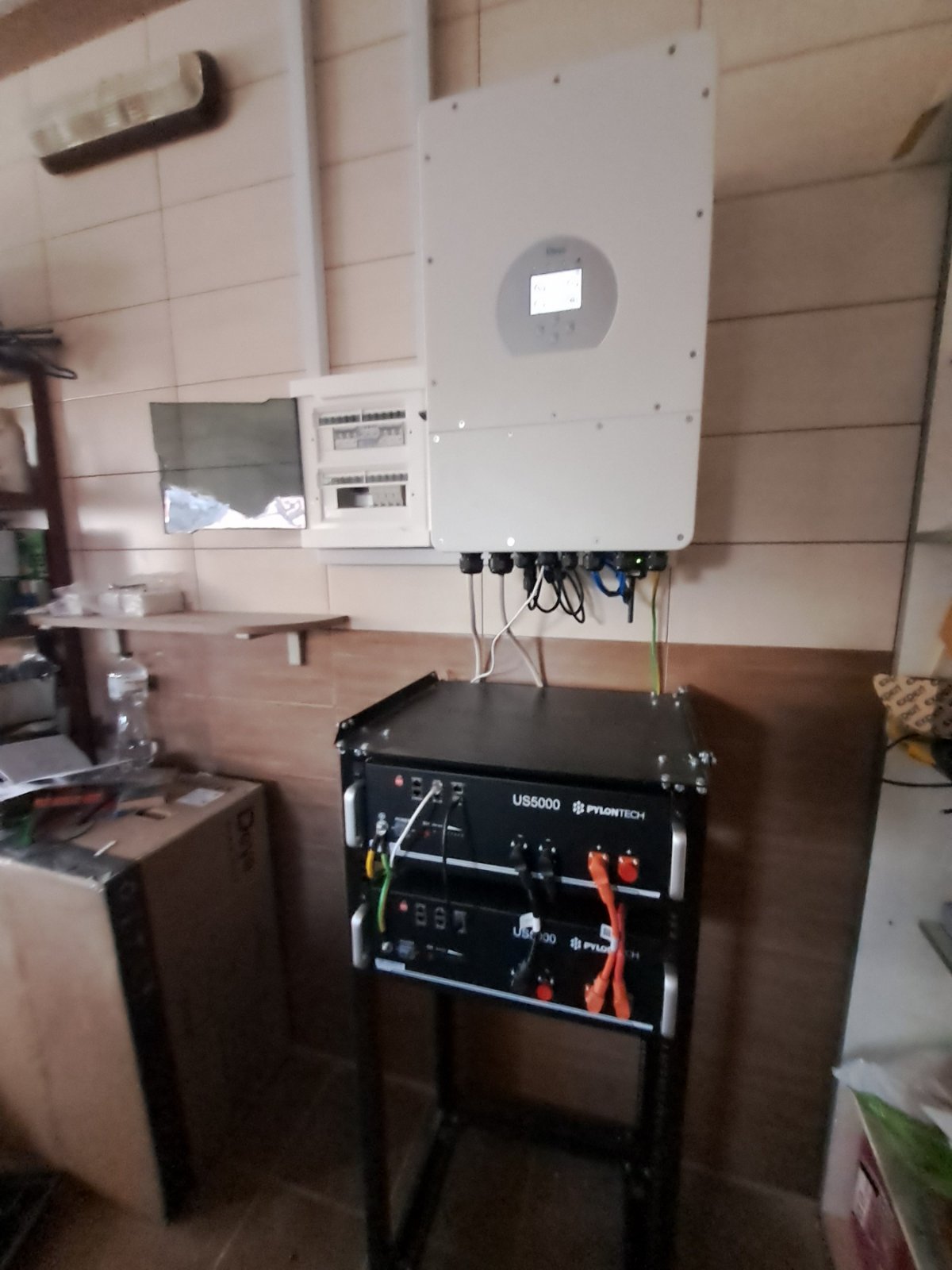 • Акумуляторні батареї PylonTech US5000: загальною ємністю 12 кВт⋅год, які забезпечують автономне живлення будинку протягом тривалого часу.