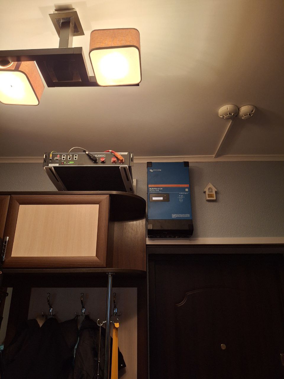 Перша система – інвертор Victron Energy MultiPlus-II GX на 3 кВт з акумуляторним блоком Pylontech US2000C. Ця система забезпечує достатній запас енергії для основних приладів у квартирі під час аварійних відключень.