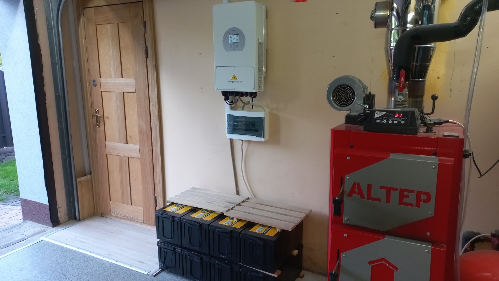 - Безперебійне живлення: Система може забезпечити безперебійне живлення дров'яного котла та самого необхідного обладнання в разі відключення електроенергії.
