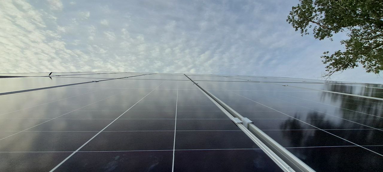 Сонячні панелі в цьому проєкті розміщені на двох площинах: