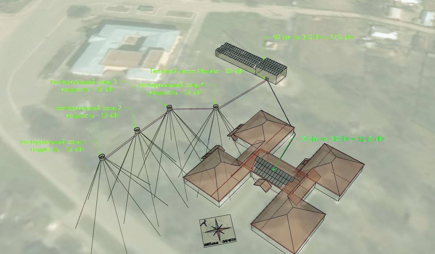 Представляємо проект, який передбачає встановлення теплового насосу "Фенікс-30 кВт" для забезпечення опалення та гарячого водопостачання дитячого садочка площею 1000 кв.м., виконаного у 2018 році. Тепловий насос використовує принцип роботи теплового насосу "повітря-вода", тобто забирає тепло з навколишнього повітря та використовує його для нагрівання води.